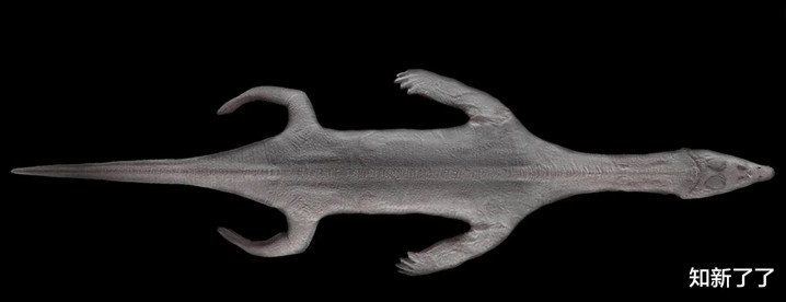 意大利因苏布里亚大学的研究人员在研究论文中写道:"皮肤以碳质薄膜的形式保存下来,揭示了鳞片的形状。它勾勒出身体和四肢的轮廓,显示其手脚长有蹼。"